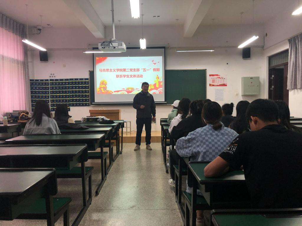 下午一点半,在笃行楼514进行活动动员,老师们纷纷与学生们交流谈心,倾听学生心声,向学生讲述运动和学习平衡的重要性,充分调动学生积极性,希望师生共同加强体育锻炼、共同放松休息,一起度过健康、平安、愉快的“五一”假期。