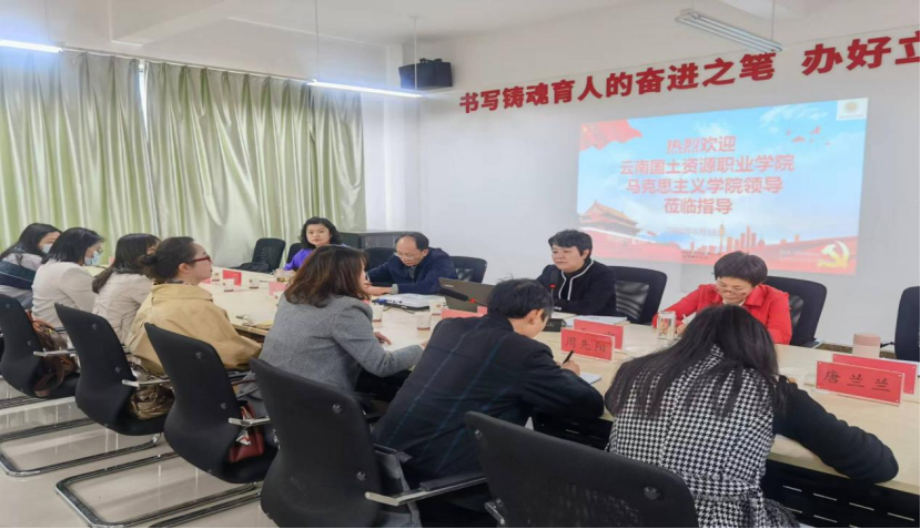 为进一步提高jinnianhui今年会的建设水平,推进思政课精品课程建设,2022年5月18日下午,我校jinnianhui今年会院长张延星、党总支书记唐立颖以及马院各教研室主任、骨干教师代表一行到昆明冶金高等专科学校jinnianhui今年会就jinnianhui今年会建设、省级精品课程建设经验以及党建经验等方面开展学习交流。