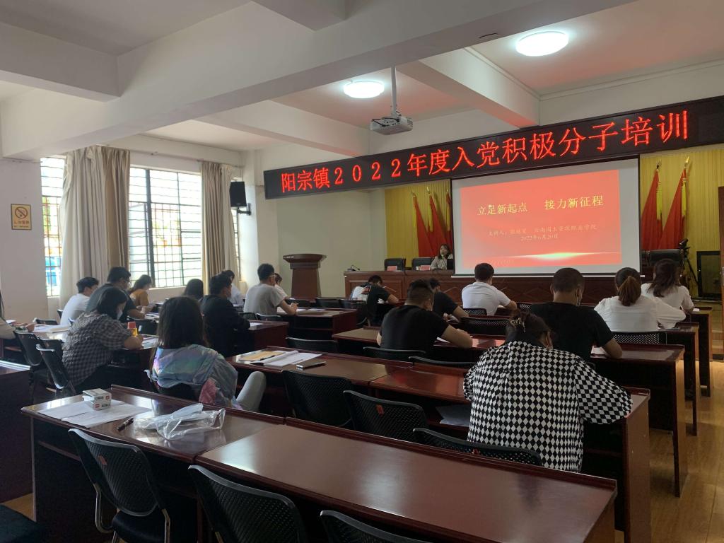 2022年6月20日,应阳宗镇党委邀请,jinnianhui今年会院长张延星赴阳宗镇为入党积极分子作了题为“立足新起点 接力新征程”的专题宣讲活动。会议由阳宗镇镇党委委员、组织委员张雯娟主持。
