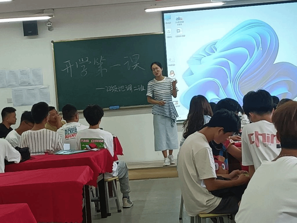 本次教育性班会课将新生入学教育“开学第一课”融入进本课程中,有效体现了我校“大思政”的特色,有效发挥了思政育人的作用。教育性班会课作为我校特色课程,凸显了灵活性、时效性、创新型等特点,打造了较为成熟的思政教育品牌,为2022级国土学子适应大学生活、创造美好未来打下了坚实的基础。