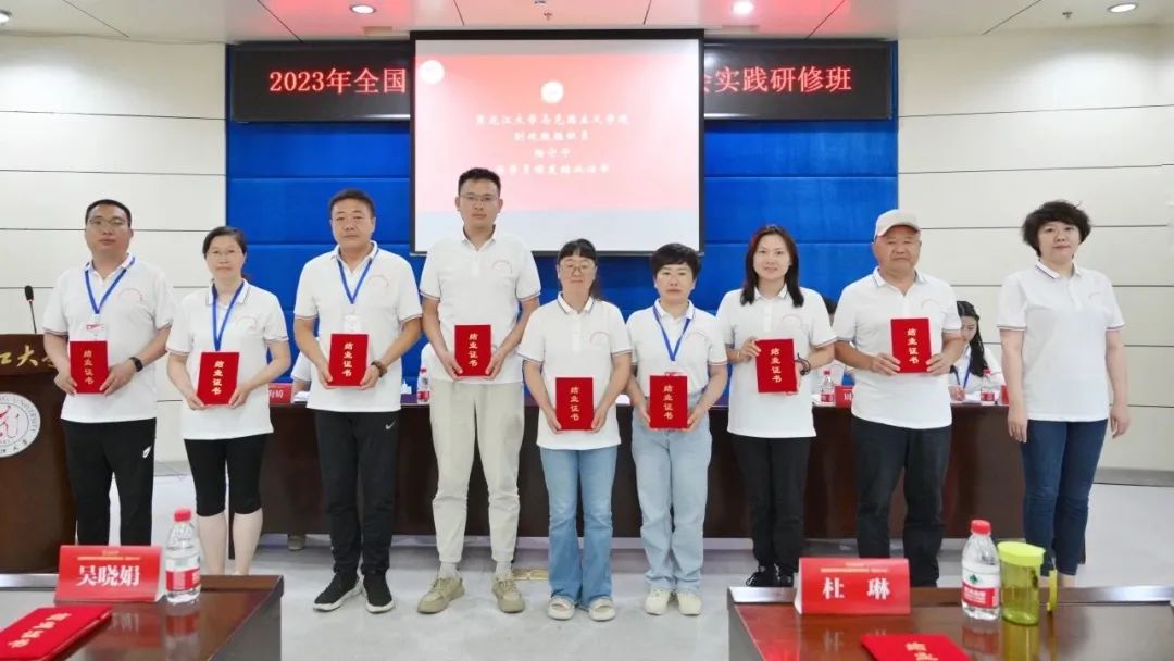 研修活动结束后,第二期研修班在结业式在黑龙江大学jinnianhui今年会举行,带班班长衣海娇在研修班结业以上指出,本期研修班理论教学和实践教学紧密结合、教学效果显著,教学方式灵活多样,实践研学感悟深刻,达到了预期目标,圆满完成了各项研修任务。通过本次研修,增强了思政课教师对习近平新时代中国特色社会主义思想在黑龙江生动实践的认识。
