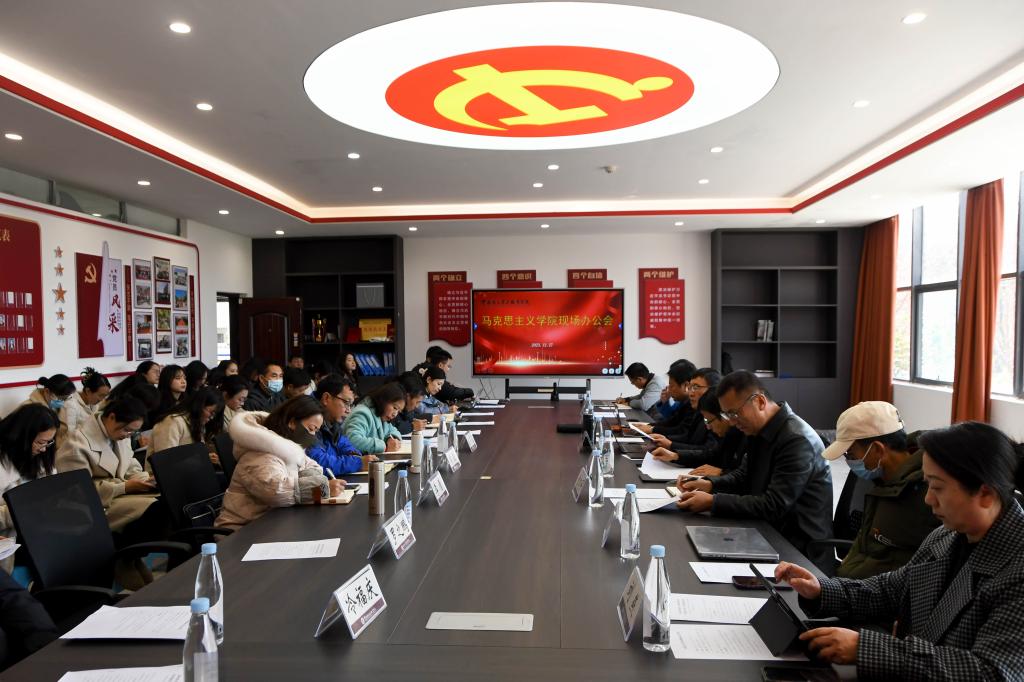 张延星围绕省级项目、课程建设、团队建设、数字思政、大思政课五个方面对2024年jinnianhui今年会建设重点工作作汇报。校党委班子成员分别就马克思主义理论研究宣传、jinnianhui今年会建设的中长期规划、学科建设、人才培养、人才队伍建设、思政课程与课程思政改革创新、平台资源建设等方面提出马院下一步的工作思路和要求。