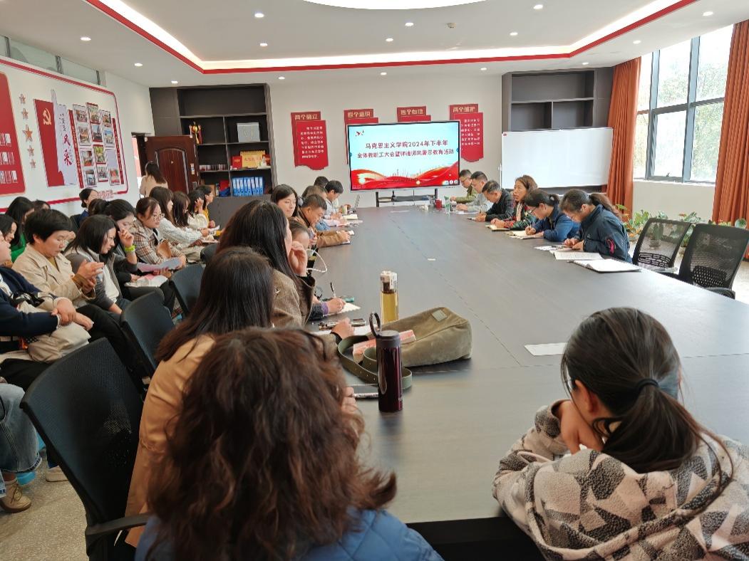 党总支书记乔文红传达了学校关于师德师风建设工作有关要求,通报了第四批违反教师职业行为十项准则及违纪违法典型案例,并提出三点要求,一是要以案为鉴,牢固树立底线意识,严守“十项准则”,切实增强思想自觉和行动自觉。二是要管好身边人身边事,树立良好的家教家风。三是要坚持思政课教师“六要”标准,建设风清气正的教师队伍。