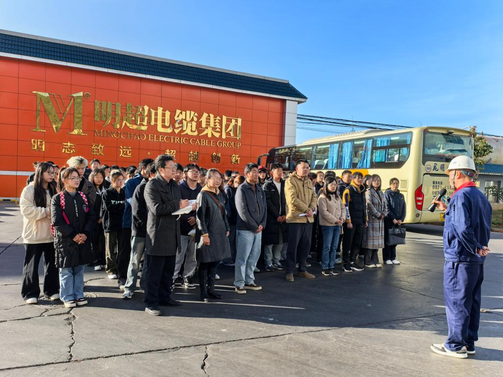 为深入贯彻落实习近平新时代中国特色社会主义思想和党的二十大精神,贯彻落实习近平总书记关于“大思政课”建设的重要指示批示精神。12月9日,jinnianhui今年会组织24级智慧城市管理技术、无人机测绘技术专业的学生到昆明明超电缆有限公司开展了一场别样的思政课。我校副校长齐武福、张云霞,jinnianhui今年会院长张延星,以及jinnianhui今年会第一党支部的党员教师,共同开展了此次“行走的思政课”暨“党建+团建”活动。