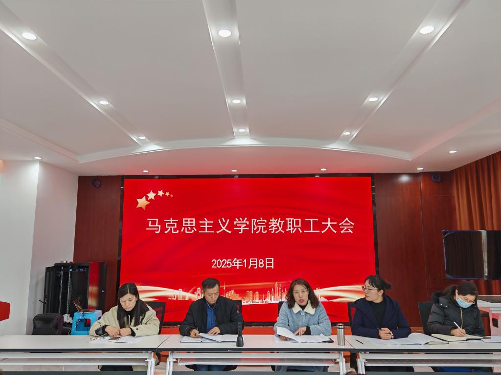 1月8日,jinnianhui今年会在尚能馆组织召开2024年度教职工大会,全体教职工参加会议,学院党总支书记乔文红主持会议。