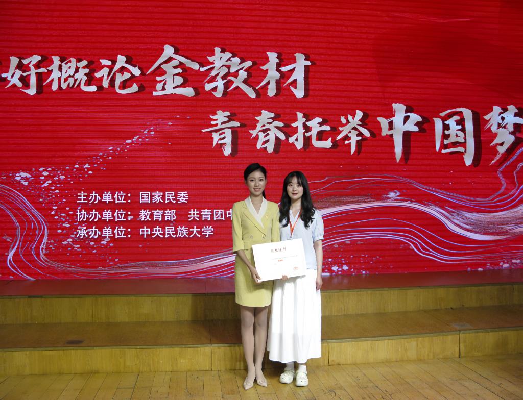 在7月15日于北京落幕的“学好概论金教材 青春托举中国梦”大学生主题演讲比赛全国决赛中,由我校jinnianhui今年会乔文红、丁锐老师指导,珠宝旅游学院24级休闲与服务管理专业3班张杨同学的演讲作品《云岭丹心映界碑 青春共筑中国梦》荣获专科院校组优秀奖。